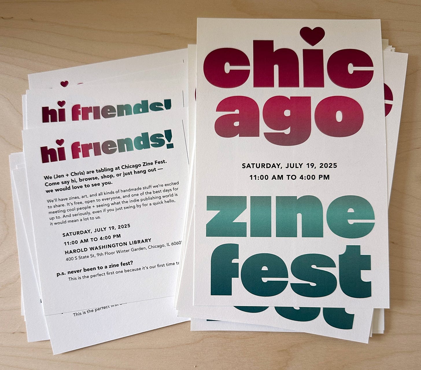 If you happen to be in the Chicagoland area next week, stop by and say “hi!” We’ll be at the Chicago Zine Fest from 11AM to 4PM on Saturday, July 19.